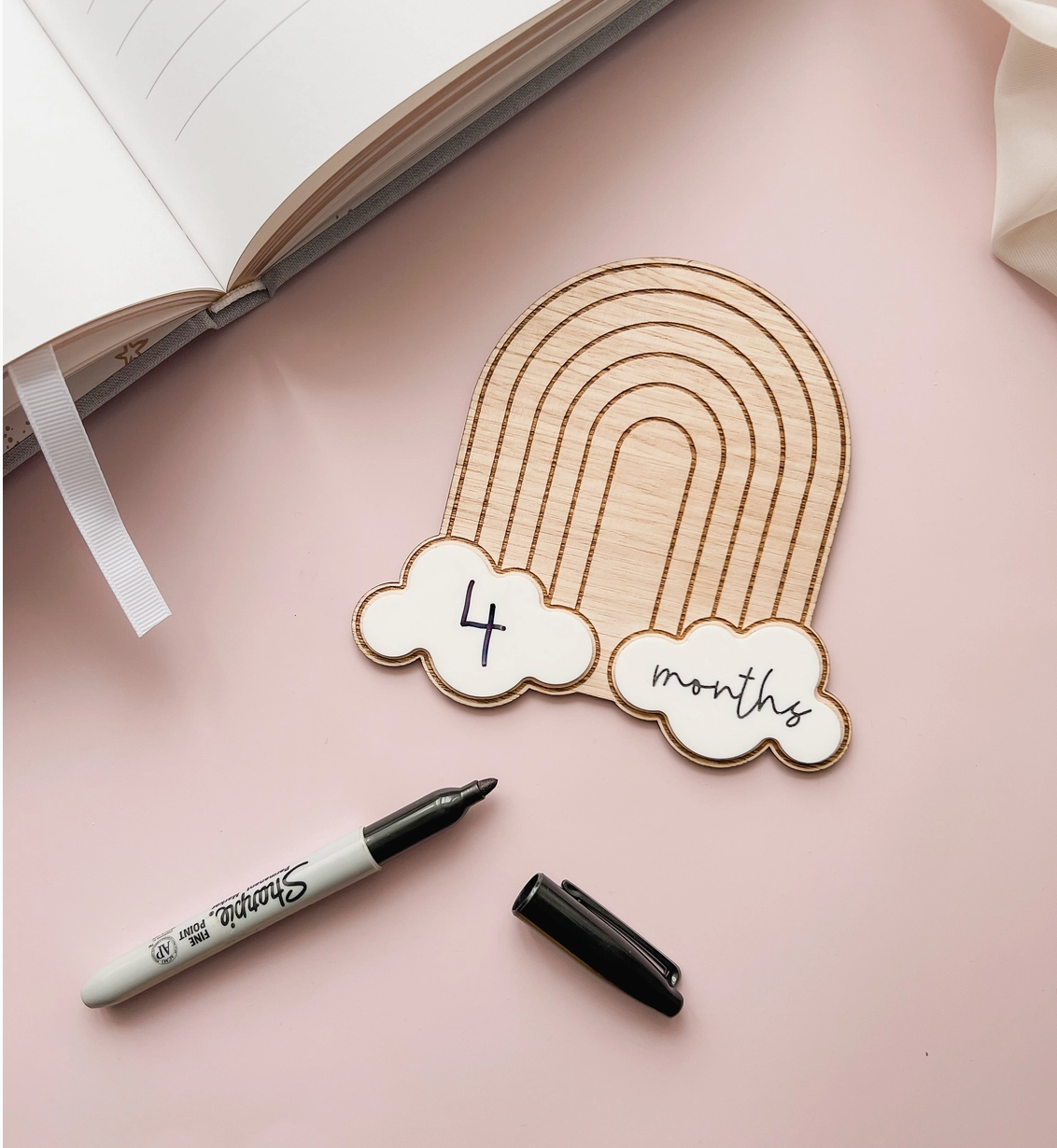 Document those monthly milestones (and more!) with our write-and-wipe Milestone Rainbow. Designed to be multi use, this piece features an arch rainbow with two cute clouds in your choice of acrylic colour.
